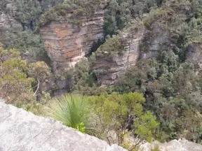 Stunning hike to steep lookout over a waterfall and deep valley, and to wavey Tarpeian Rock Lookout with awesome vistas of Mt Solitary and far-off valleys.
