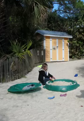 Amazing wooden playground with splash pad and gizmos galore, plus carousel and free science museum, all in a tropical setting.