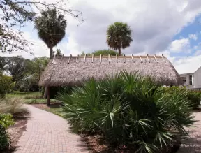 Tropical paradise with amazing trees, soft green grass, and woven huts shading picnic tables with BBQs that line the river, plus bike and kayak rentals. Beware alligators.