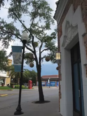 Main strip of West Palm Beach, with colorful and inviting architecture and decorations.