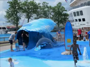 Super fun for kids- a playground in the water with sprays shooting everywhere, and a lazy river that's relaxing for parents!
