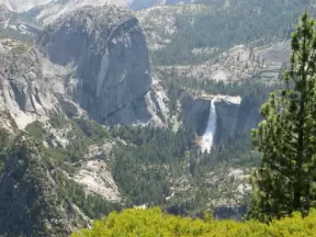 Breathtaking side-on view of half dome, three waterfalls, and the entire stunning valley.