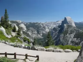 Breathtaking side-on view of half dome, three waterfalls, and the entire stunning valley.