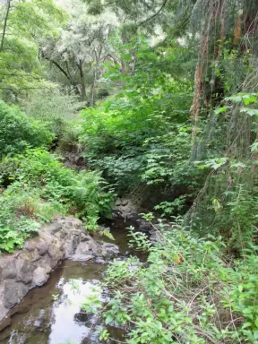Gorgeous botanical garden with paved one mile walk to a waterfall.