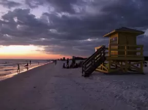 White sand beach with glorious sunsets. You can grab food at the cafes on Pine Ave and have a picnic at the beach.