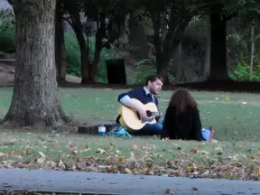 A magical spot where birds sing in the trees, students lay out on the little grassy knolls, and statues enlighten.