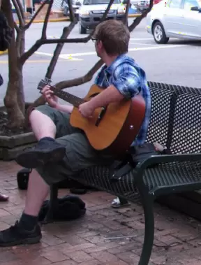 Nice outdoor mall with cafes, live music, and shops.