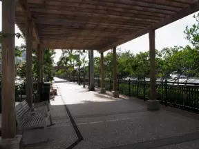 Wonderful development on the water with promenade, space-age playgrounds, splash pad, and skate park shaded by the bridge.