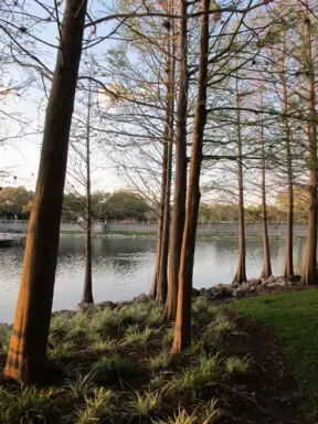 Walk past lake with cypress trees, and down three culdesacs with mansions.