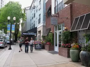 A main street of late 19th century storefronts, popular cafes, and a hip college scene. Recently, suffering an epidemic of homelessness relating to mental health problems.