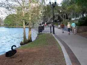 Fantastic shady walk past three lakes, mansions, wildlife, and Celebration Town Center.