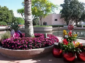 2.5 mile walk around the lake, plus cute sidewalk cafes under palm trees with ferns.
