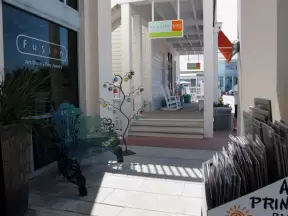 Gorgeous outdoor mall near UC San Diego, with lots of public spaces, cafes, and even a huge outdoor climby for kids.