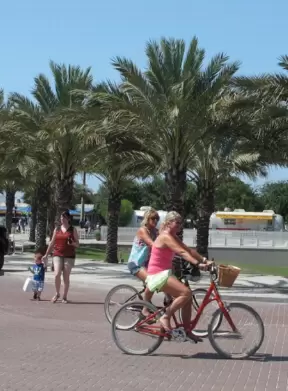 It's fun and easy to ride along the boardwalk in South Beach that is nestled between Ocean Drive and the sand. You can bike for 7.7 miles from South Pointe Pier to 87th Street.
