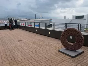 Wonderful development on the water with promenade, space-age playgrounds, splash pad, and skate park shaded by the bridge.