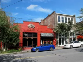 A main street of late 19th century storefronts, popular cafes, and a hip college scene. Recently, suffering an epidemic of homelessness relating to mental health problems.