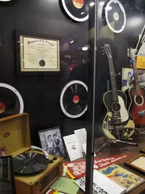 Nice two-storey museum with well-told history of banjo on lit-up porch, beautiful banjos displayed, and front room where you can play a banjo!