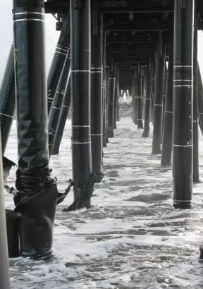 A wide expanse of desolate beach, with a wildly wonderful pier! This is not your average pier!