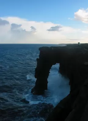 When it's flowing, the most unusual and wonderful sight you may see in your life! Red lava flowing into the ocean. When it's not flowing, there's still a lot to see!