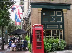 A main street of late 19th century storefronts, popular cafes, and a hip college scene. Recently, suffering an epidemic of homelessness relating to mental health problems.