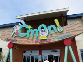 Attractive children's museum with market and carts, Newton's playhouse where you can shoot balls, ball pit, fire engine, oak tree tunnels, stage, dress-up area, and pizza kitchen.