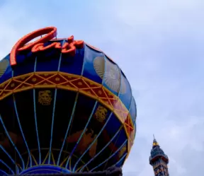 Waterfront area with restaurants, live street performers, entertainment, toy stores, and carousel.