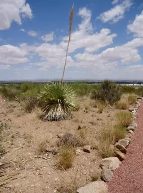 Botanical garden on top of a hill with views all around, cactus garden, colorful wildflowers, and imaginative kid's garden.
