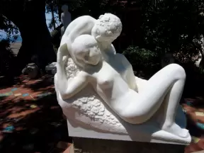 Beautiful sculptures about human bonds (mother and child, lovers) in an 18th-century elegant mansion.