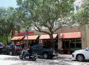Main strip of West Palm Beach, with colorful and inviting architecture and decorations.