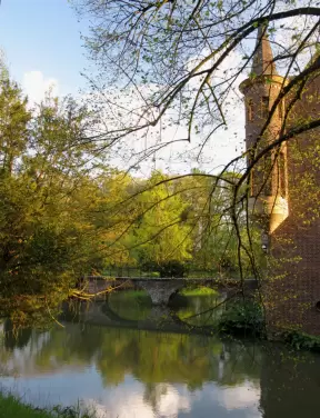 Lovely 14th century castle with a moat, now a restaurant, cafe, and hotel. A great place for a walk!