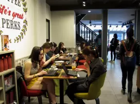 Beautiful architecture, sculptures, modern art museum, designer stores, play equipment, and public market with swings.