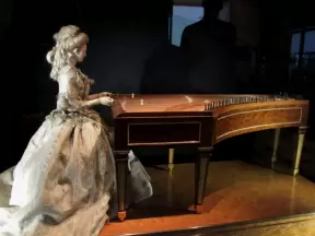 Center with large magical lifelike dioramas of Foster's songs, bell-tower, and river gazebo.