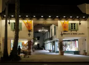 A sumptuous street with Spanish archways and courtyards and unique shops for the extremely rich.
