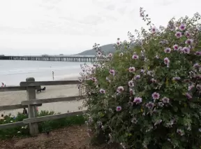 A pretty beachside town, with a wooden pier and wide windy beach with perfect views of Morro Rock, and colorful houses with gardens, backed by gently-sloping hills.