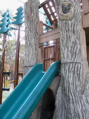 Super fun playground with adorable trees. Every imaginable play structure.