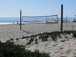 Pretty beach where you can take a long walk along the shore, or along the sidewalk in the morning.
