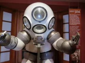 An amazing amount of diving artifacts displayed in a beautiful and interesting way- like a journey into another world.