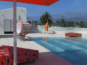 A pedestrian-only area on State Street with sidewalk cafes, good shopping, and colorful Spanish architecture.