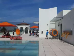 A pedestrian-only area on State Street with sidewalk cafes, good shopping, and colorful Spanish architecture.