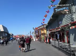 Touristy wharf with souvenir shops, mediocre restaurants, but gorgeous blue-green water and sometimes seals swimming by!