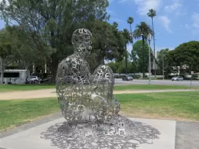 A remarkably pretty planned park with a stream that runs through it, lots of plants, an imaginative Spanish playground, and whale statues that spout water!