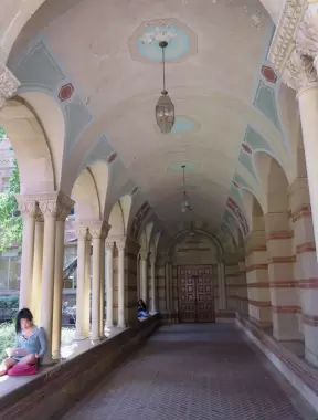 Gorgeous Gothic architecture, impressive chapel, and cute patios under leafy trees.