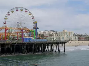 Gorgeous spot with wide pier, surfers carving the waves, whale playground, wide open attractive plaza, Pismo Beach selfie sign, and wooden promenade with views of the hills and sea.