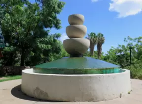 Modern building with large windows, fascinating Peruvian and Costa Rican objects, and sculpture garden in Loch Haven Park.