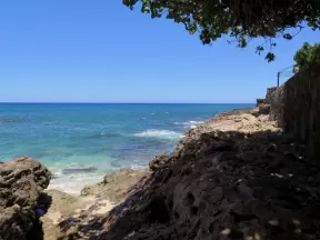 Wai'olena (Waiolena) Beach Park is a rocky area with three oceanview picnic pavilions where people swim in the spring-fed pond.