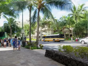 Gorgeous pedestrian-only street with exquisite tropical landscaping and sidewalk cafes galore.