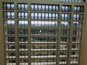 Private university with raised views over a lake, and Frank Lloyd Wright architecture.