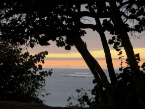 Winding sidewalk along Ocean Dr with tons of morning shade, and gorgeous ocean views through the trees!