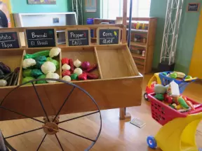 Super children's museum with rope climbey, music station, dance area, lincoln logs, magnetic triangles, sand that responds, supermarket, and more!