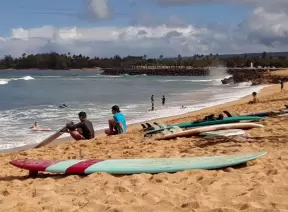 Calm beach that's great for kids and for early morning laps. Views of Waikiki skyline from the water.